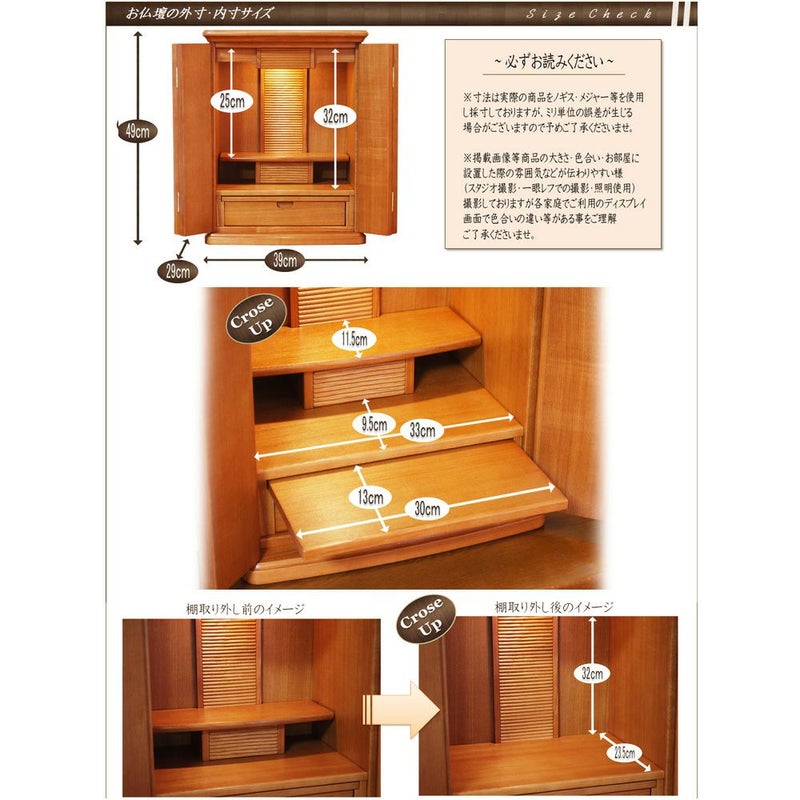 モダン仏壇 ミニ サンマリノ 16号 ライト色サイズ表記