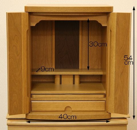○おリンや香炉などを載せる便利な、スライド式の棚(膳引き)付です。