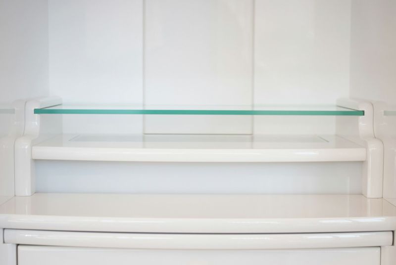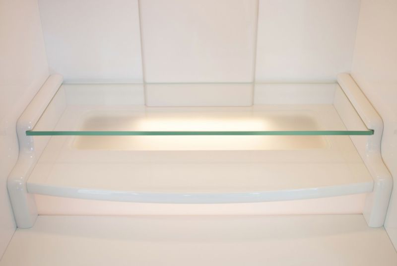 最上段の棚には、透明感あるガラスが使われおり