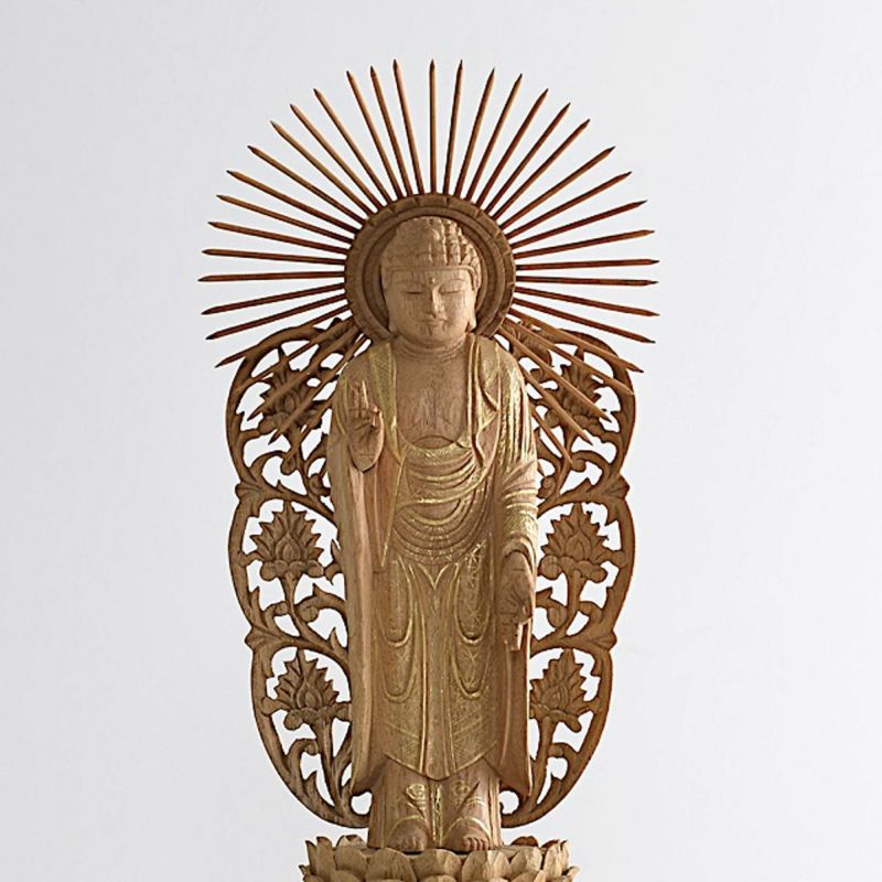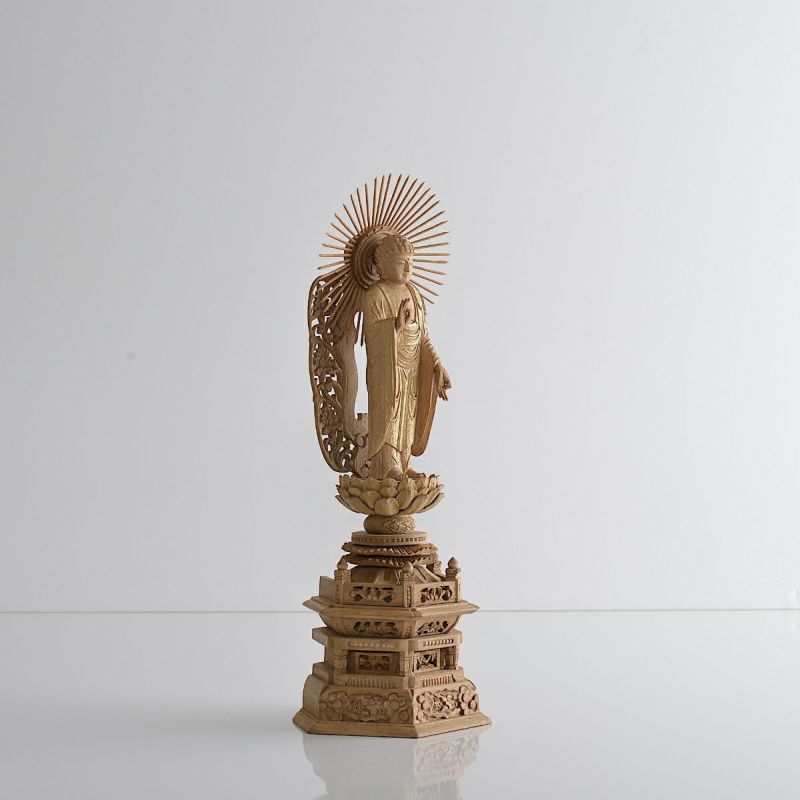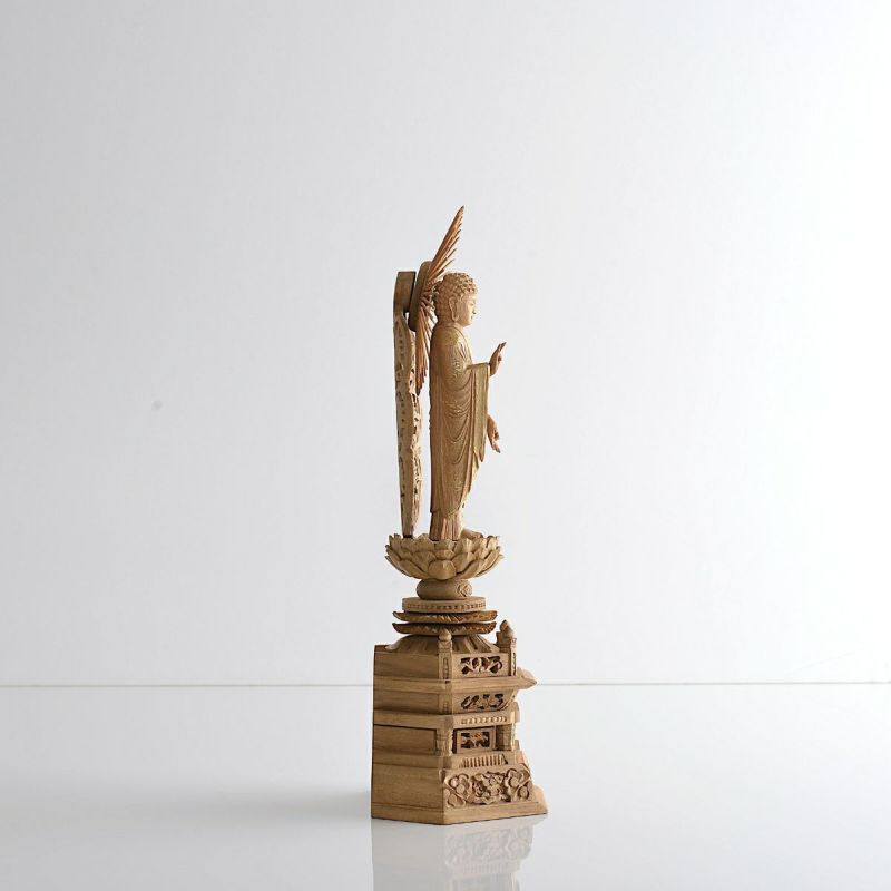 阿弥陀如来像 西 六角座 樟木 3.5寸