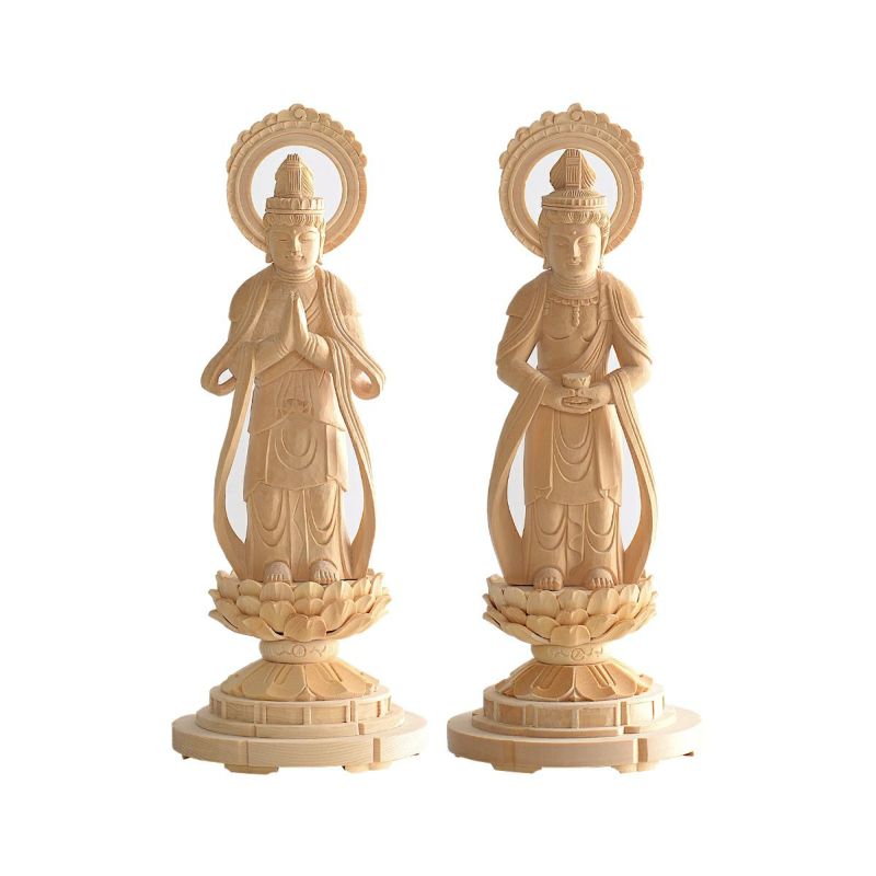 観音菩薩像・勢至菩薩像 白木 4.0寸