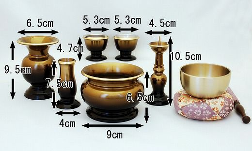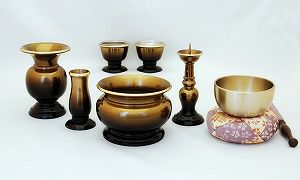 ◇セット内容:六具足・おりん・リン布団(花柄)・リン棒(花柄)・香炉灰