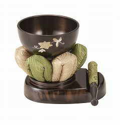 りんは彫刻入り、りん布団は弥生花、りん棒は縞黒檀使用、りん台は黒丹色です。