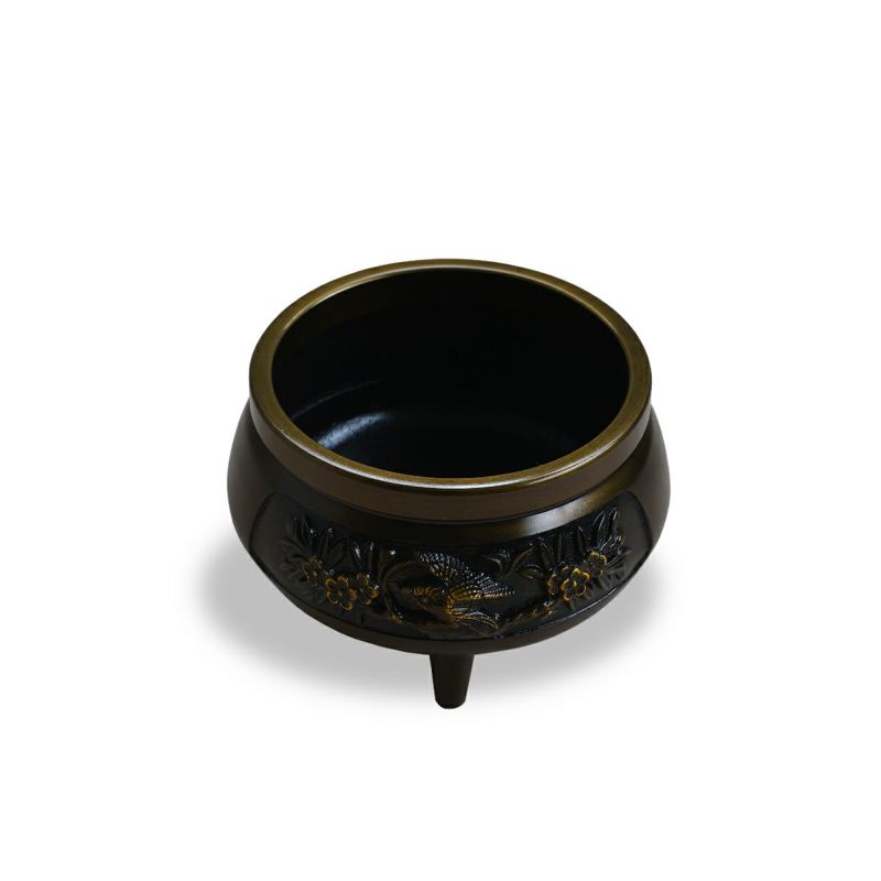 香炉 (お線香立) 40 花鳥入 サイズ:高さ8cm 径12cm ※香炉灰付き
