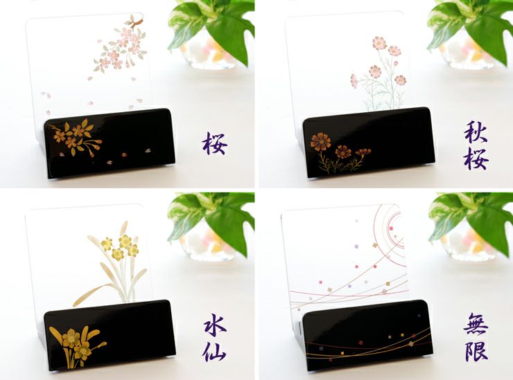 見台 (過去帳台) 4種(桜・秋桜・水仙・無限) 黒塗 背低型 3.0寸 四季の花々を、会津蒔絵で仕上げました。