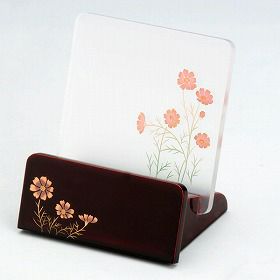 見台 (過去帳台) コスモス 溜塗 背低型 3.0寸 四季の花々を、会津蒔絵で仕上げました。
