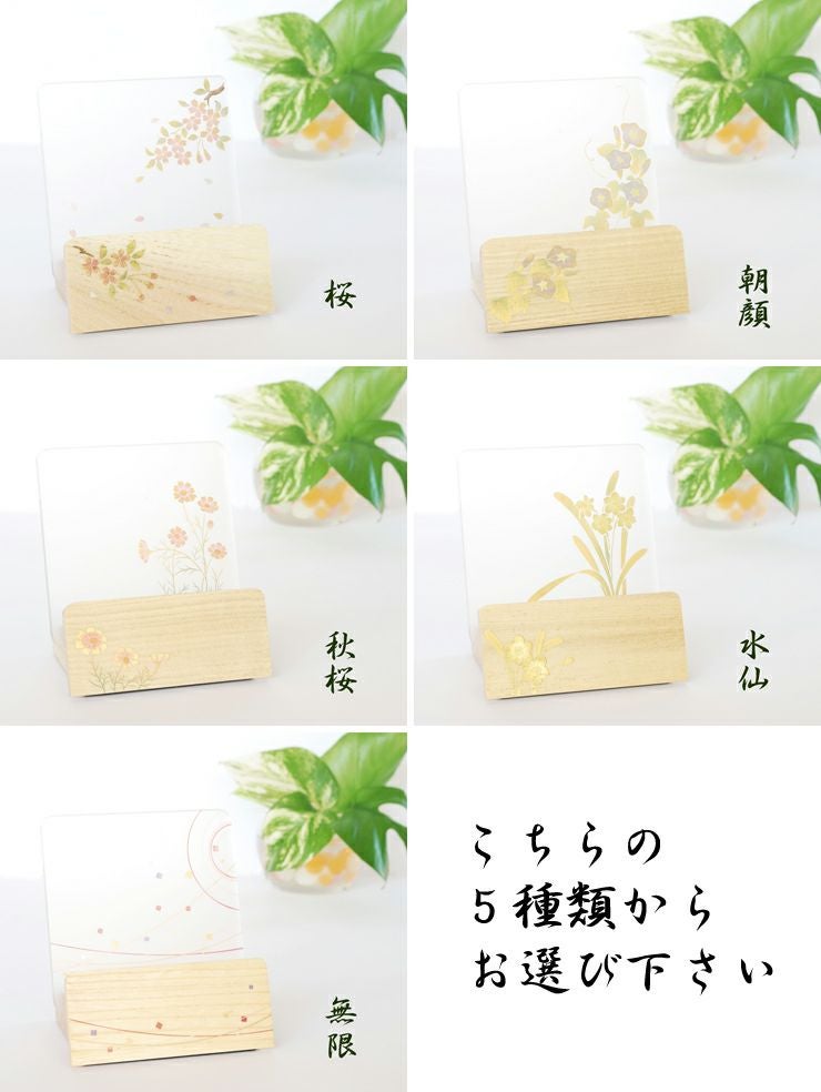 見台 (過去帳台) 4種(桜・秋桜・水仙・無限) 黒塗 背低型 3.0寸 四季の花々を、会津蒔絵で仕上げました。