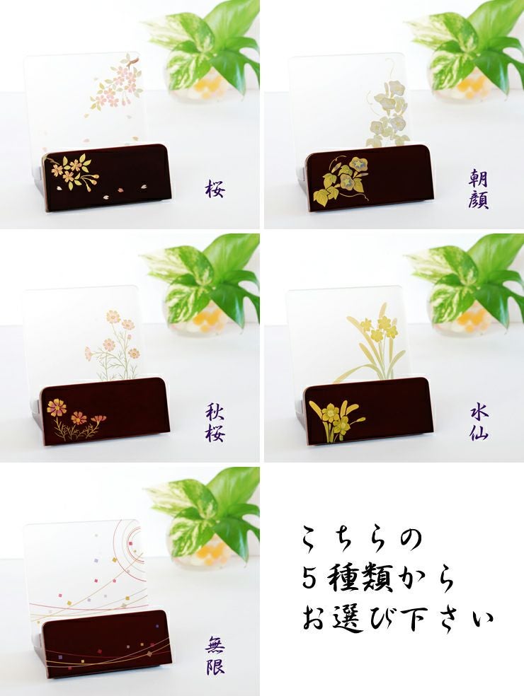 見台 (過去帳台) 4種(桜・秋桜・水仙・無限) 黒塗 背低型 3.0寸 四季の花々を、会津蒔絵で仕上げました。