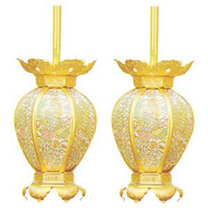 真鍮製の鳳凰透かし柄に彩色が施されている吊灯籠です。