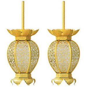 アルミ製の夏目型吊灯籠に唐草模様が入っています。艶消しタイプ