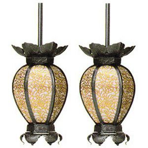 アルミ製の吊灯籠に唐草模様が入っています。イブシタイプ