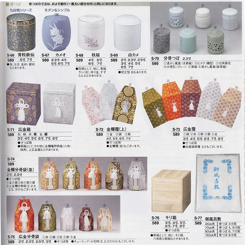 骨壷 骨袋 各種・各サイズありますのでお問合わせ下さい。