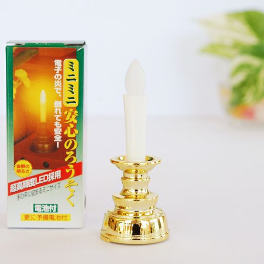 頭の発光部を押すだけで点灯、消灯できる、電池式の倒れても安全なローソクです。