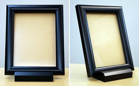 黒縁のシンプルな写真立。縦・横置きどちらもできます。 サイズ:高18×幅14.2奥9cm