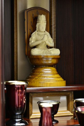 木彫りの現代光背の大日如来像です。こちらは増台が付いており高さが調節できます。