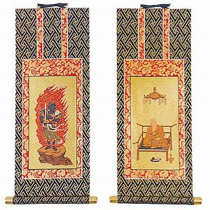 紺表装に金地で仕上げた掛軸です。伝統型のお仏壇からモダンなお仏壇までどんなお仏壇にも似合います。