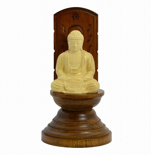 仏像 木彫 座釈迦如来 現代光背 ツゲ 25 総高20.4cm