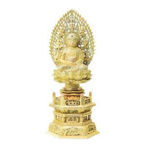 仏像 総柘植 切金淡彩 六角台座 座弥陀如来像 (天台宗)他 飛天光背 2.0~3.0