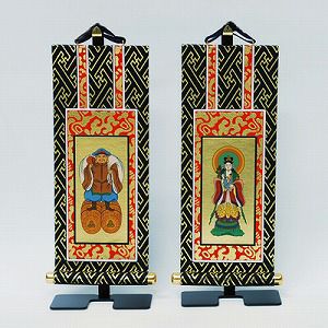 紺表装に金地で仕上げた掛軸です。伝統型のお仏壇からモダンなお仏壇までどんなお仏壇にも似合います。