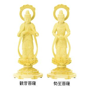 仏像 総白木 丸台座 観音菩薩・勢至菩薩 輪光背 木地仕上(対) 3.5~6.0