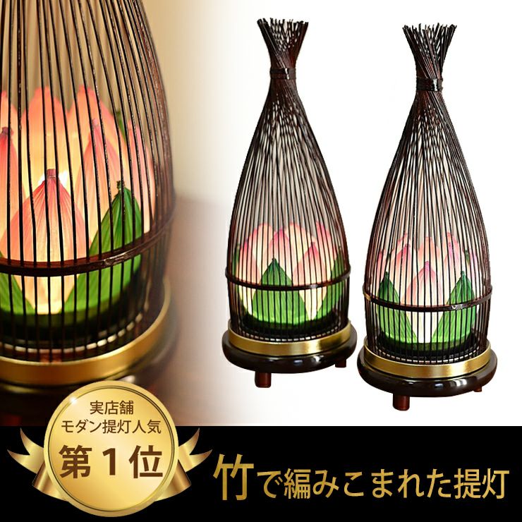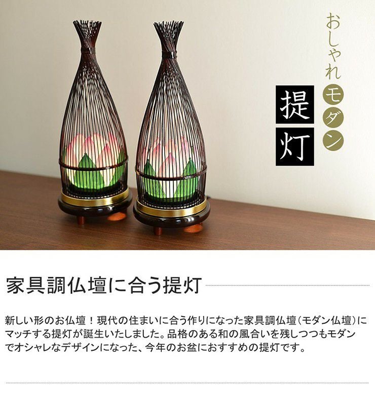 蓮華をモチーフに灯りがともり、竹ひごで編まれたモダンでオシャレな提灯です。