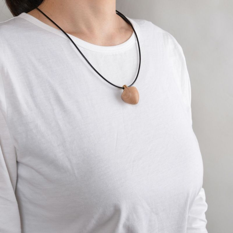 いつでも身に付けていられるように、首元にはお肌に負担のかからない本革を使用し、遺骨収納部分も天然木の無垢材で仕上げています。金属製品に比べ軽量なので女性の方にもオススメです。