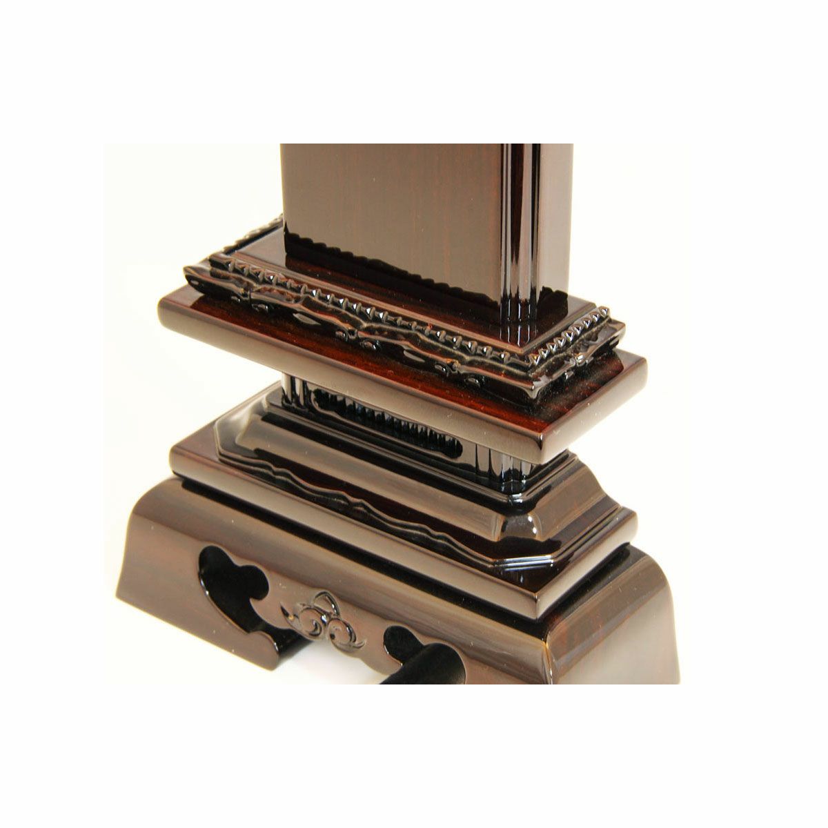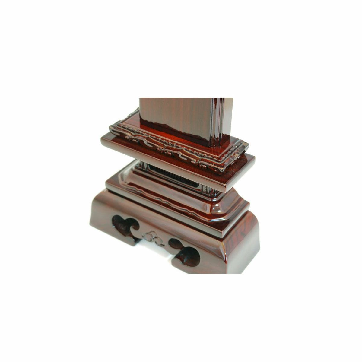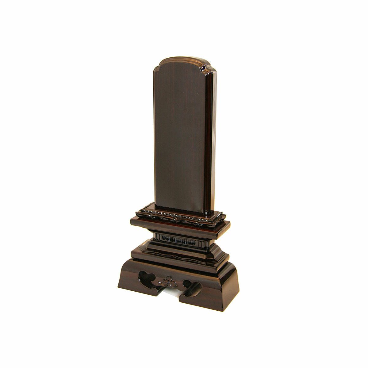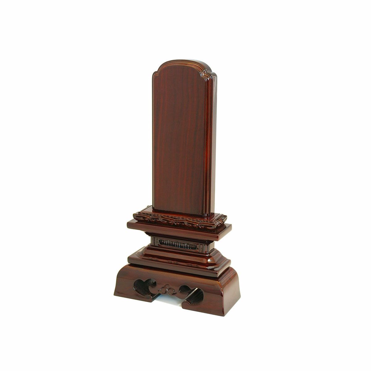 唐木位牌とは(黒檀材、紫檀系材)で作られている位牌の事を言います。唐木とは昔、中国(唐)から日本に入ってきた事から呼ばれるようになりました。主に東南アジア諸国からの採れる材から作られています。位牌は大きく分けるとこの「唐木位牌」と漆などで塗られ金箔など施された「塗り位牌」とがあります。形状も春日型、勝美型、猫丸型などありサイズも小さいものは15cm以下から大きいものは30cmを超えるものまであります。