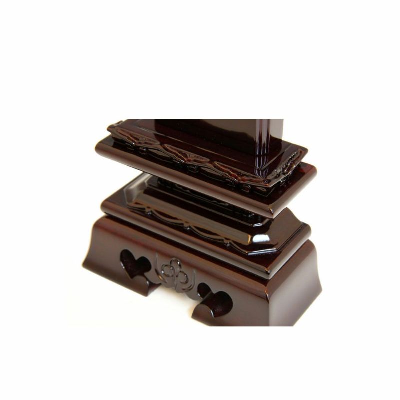 良質の紫檀系の無垢材を使用して、札板の下に蓮華の彫刻を施し、台座の前面に、独特の「前垂れ」が付きます。