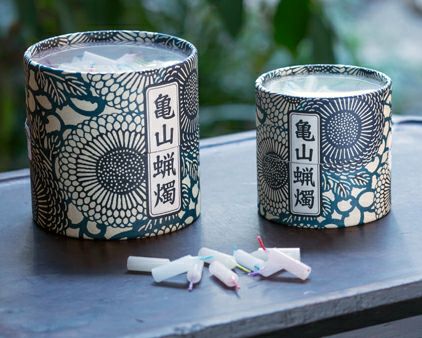 五色のローソクの詰め合わせで約300本入っています。 筒箱は和風モダンなインテリアとしても置いていただけます。