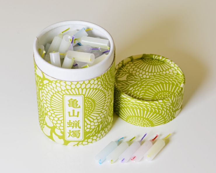 カメヤマローソクです。お使いしやすい筒箱タイプで、フランスで生まれたデザインと京都の伝統的な技で生まれました。