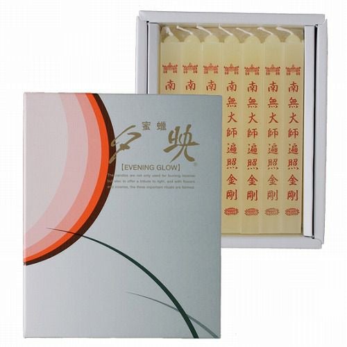 各宗派の経文が入った蜜蝋 りのローソクです。燃焼が安定するため、炎の形が丸みを帯びます。その美しい炎にはリラクゼーション効果があります。ススが少なく、最後まできれいに燃えます。ほのかな甘い香りをお楽しみください。