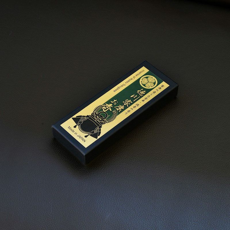 シダの葉のが特徴的な兜と家紋(三つ葉葵)が デザインされた渋いパッケージに入っています。
