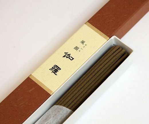 風韻伽羅 香木・沈香の中で最良な物を伽羅と呼び、ベトナムのごく限られたからところから産出されません。〔風韻伽羅〕は苦味と甘みのある気品あふれる伽羅の香りを親しみやすい穏やかな香りに仕上ました。
