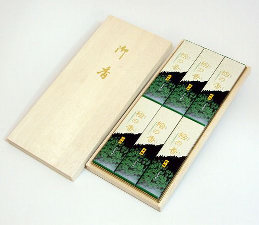 天然桧を調合して、日本古来から伝わるやすらぎのある桧の香りで人気のご進物用線香です。
