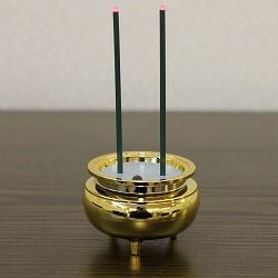 プッシュ式スイッチを押すだけで点灯、消灯できる、電池式の倒れても安全なお線香です。