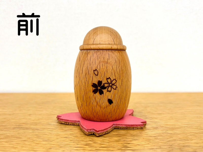 桜のイラストが入り、桜の形をした革製のシートが付いています。
